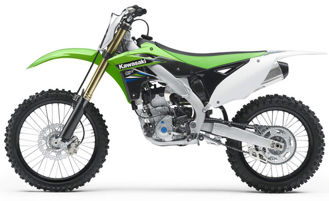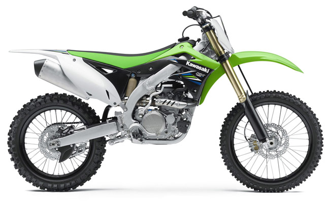 The KX250F gets the launch control system that was implemented on the KX450F in 2012, making it the first bike in the 250 class to have this holeshot-helping technology. The chassis gets a tweak via the front engine mounts, as the high-tensile steel plates are now 29% thinner than the 2013 units. The KX250F also receives revised Showa Separate Function (SFF) fork settings, rear shock tuning, an upgraded transmission and low-density compound grips. Last year, the KX450F received Kayaba Pneumatic forks, a stiffer swingarm, new ECU settings and upgraded engine internals. For 2014, it gets new soft-compound grips and new decals on the shrouds.