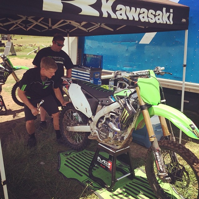 There was one more guy who raced on board a yellow bike last year – Campbell Mining Suzuki’s Jake Moss. Around two weeks ago, Jake took delivery of a KX450F, and since then he’s been out testing with Troy Carroll’s Kawasaki team. With Monster Energy pulling its funding from the squad in 2014, and Jay Marmont making the switch back to Yamaha, the team needs a rider, and a naming rights sponsor. If the stars align, we could see Jake racing for a Campbell Mining Kawasaki team this year, and we see no reason why his teammate wouldn’t be Adam Monea.
