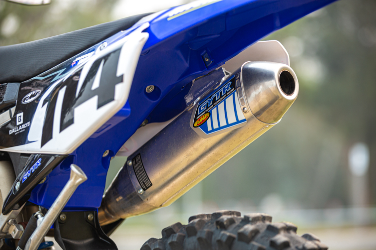 The bike’s standard muffler may not look cutting edge, but it does a very effective job of taking the abrupt edge off this MX-bred engine’s power delivery to create a linear power curve, and exceptional traction in the bush. That said, because the OEM muffler is heavy and long and swings off the back of the bike, we fitted a GYTR/FMF PowerCore 4 Slip-On muffler and FMF S/Steel Megabomb Header Pipe. In addition to looking and sounding better, the GYTR/FMF system also saves about 1kg. And even without a mapping change to complement it, this bolt-on adds noticeably to throttle response (which the standard bike lacks at lower RPM) and short-shiftability. In slick conditions, however, this punchier power makes it harder to get the thing hooking up. So you do need to marry the GYTR/FMF exhaust with the softer traction map (and ideally, taller gearing) to retain tractability. In really slippery conditions, we’ll even revert to the standard exhaust system, simply because it offers the smoothest power and best traction.