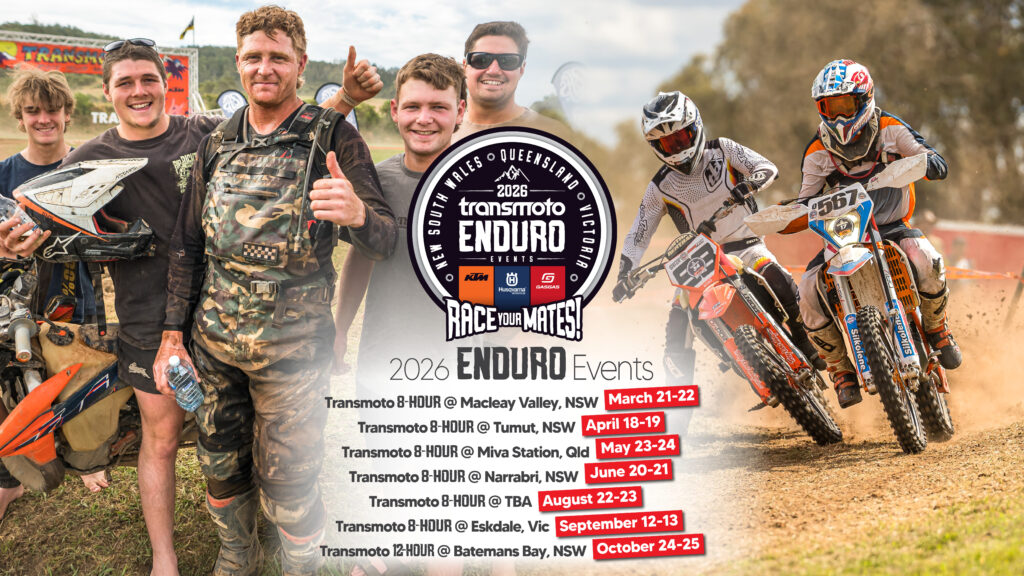Click here to enter the Transmoto 8-Hour at Macleay Valley, NSW, powered by Husqvarna Motorcycles Australia, and check out the rest of our 2026 events and on-sale dates.