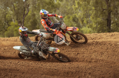 Watch Kevin Windham and Brett Cue as they burn laps on their CR250 and CR500 two-strokes.