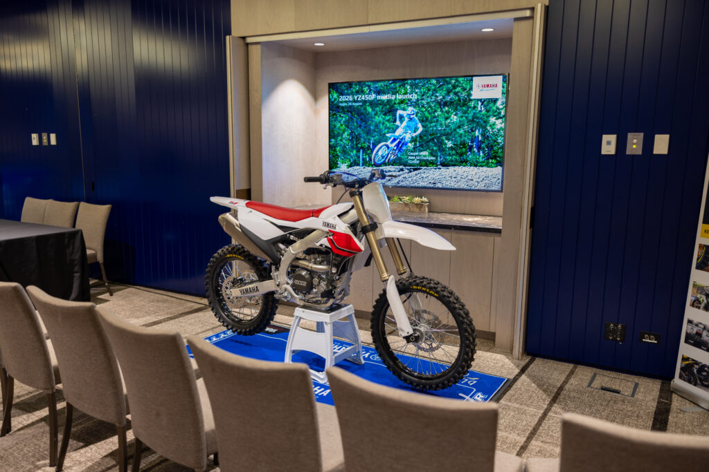Tanti: Yeah, so I was running the add-on on the ’25 model, which Jed’s bike here has. So just to me, they almost feel the same, just a little different engagement points. I’ve been riding the ’26 for a week or two on Supercross. So yeah, I really enjoy those things, and all these new features that they’ve got for the general consumer. Like the ease of access to change your mapping, and even lock it, which I was pretty impressed by. Just don’t forget your password, apparently haha. Just like your iPhone.