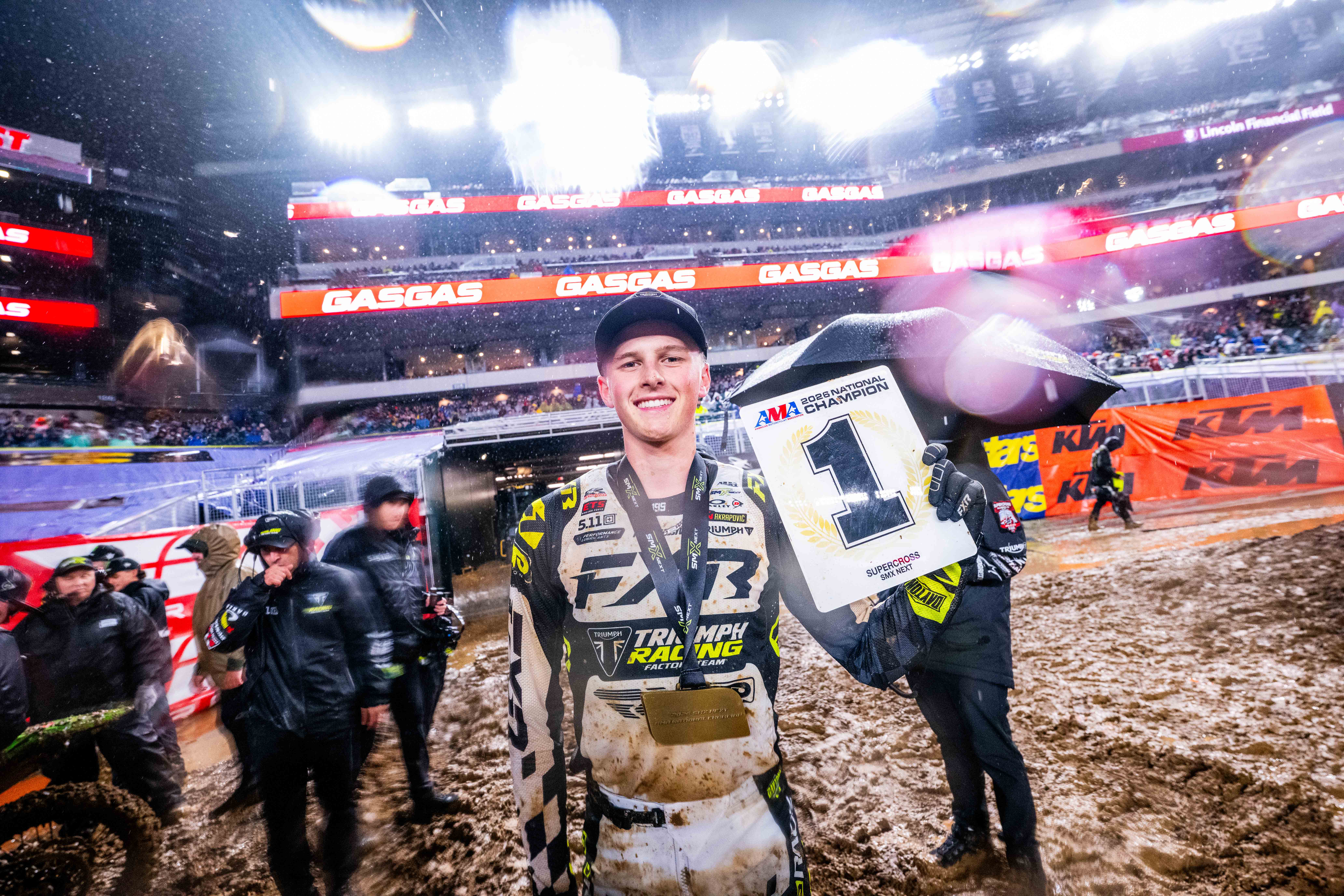 “It’s been a great end to the series and a dream come true to come away with the SMX Next Supercross AMA National Championship title. My goal when I came into these events was to win races, so I’m pretty pumped to walk away with two wins and a second place. It is exciting and rewarding to have had all of the hard work pay off. The SMX Next season has brought so much experience for me and I’m definitely grateful for it; there’s been some highs and lows, but I was able to power through mentally and physically, and I learnt a lot. The highlight for me has to be Daytona – it’s such an iconic place. To win there was very special and for it to be my first SX win, and to win for the team, is definitely something I won’t forget. The bike has been great right the way through; right from the start when I joined the programme, I adapted to the TF 250-X really well, and I felt comfy on the bike straight away. The more we test and dial in the bike for me, the better it has gotten, so a big thanks to Triumph and the team for that. Having a team like Triumph Factory Racing behind me has been awesome. There’s so much knowledge and everyone has been in the industry for a long time – I’m grateful to have them behind me. I want to thank everyone in my corner; my mechanic Dillon, he puts in a lot of work for me, Jeremy, Scuba, Brownie, Ivan and Stilez have been helping me out week in, week out too. I’m grateful to the whole team for all of the hard work they do for me to compete at this level. Following Philadelphia, I’m looking forward to heading back and shifting the focus to motocross to get ready for the outdoor season.”