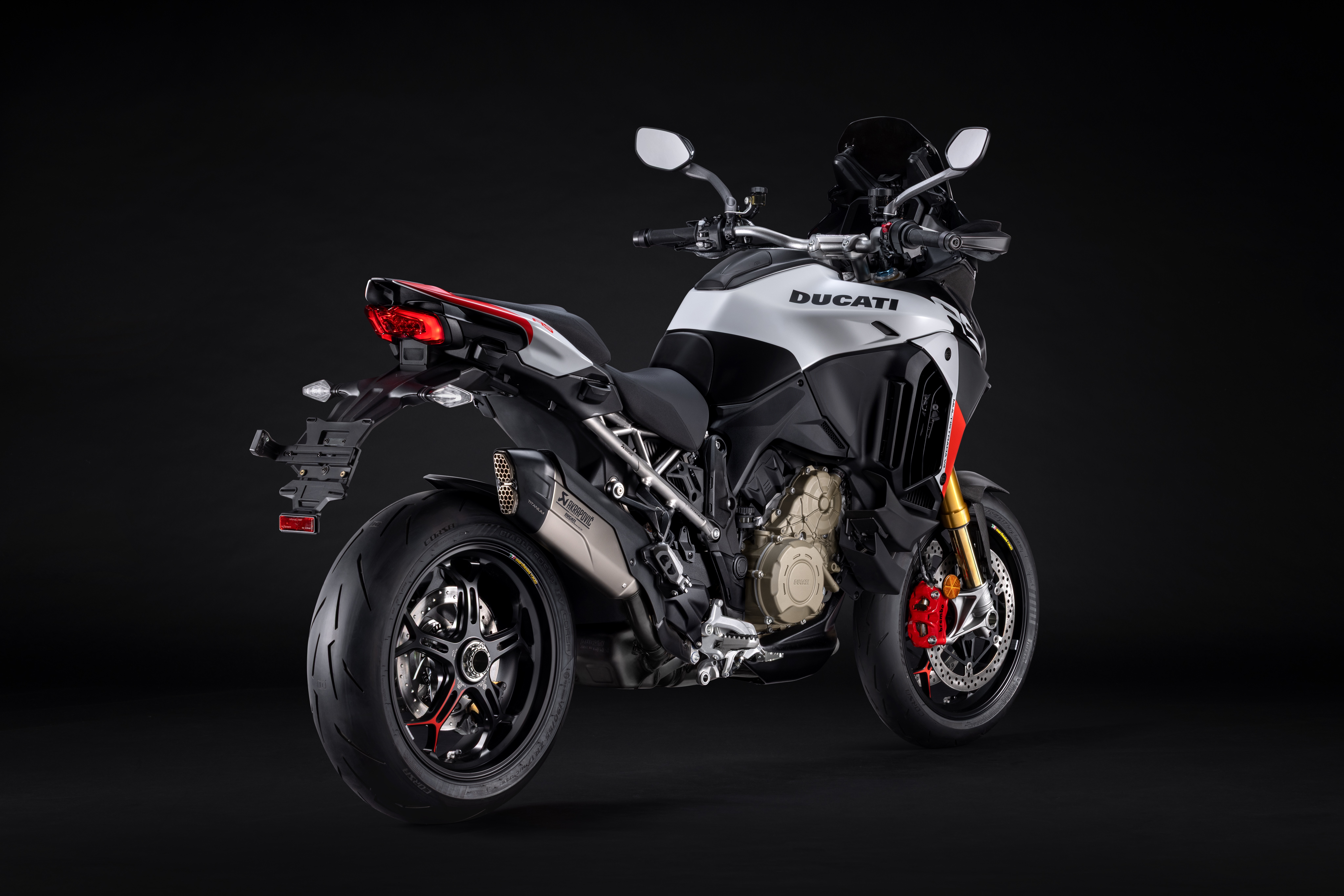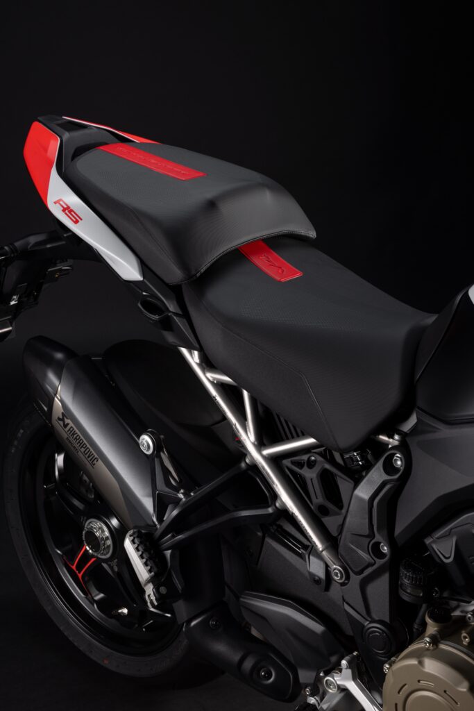The Ducati RS range was born from the desire to overcome the compromise between the thrill of sports riding and the ability to offer true grand touring comfort to rider and passenger. Thanks to the Desmosedici Stradale engine with desmodromic timing, dry clutch, and Akrapovič muffler, Öhlins Smart EC 2.0 suspension, and forged wheels, the V4 RS offers unique performance and riding sensations, while maintaining the balance that has always distinguished the Multistrada family.