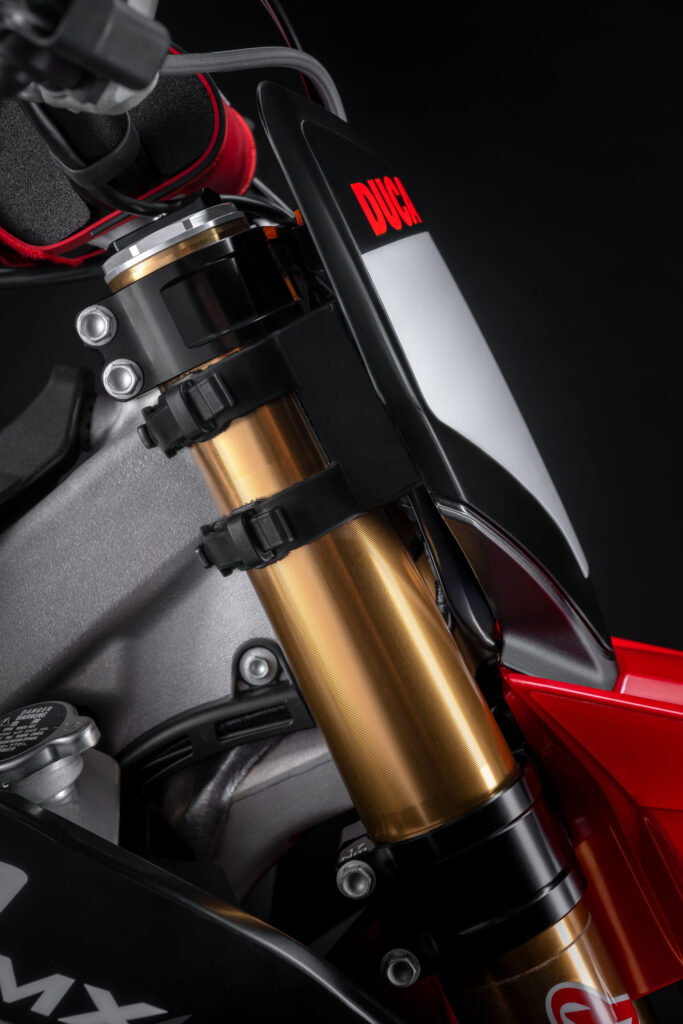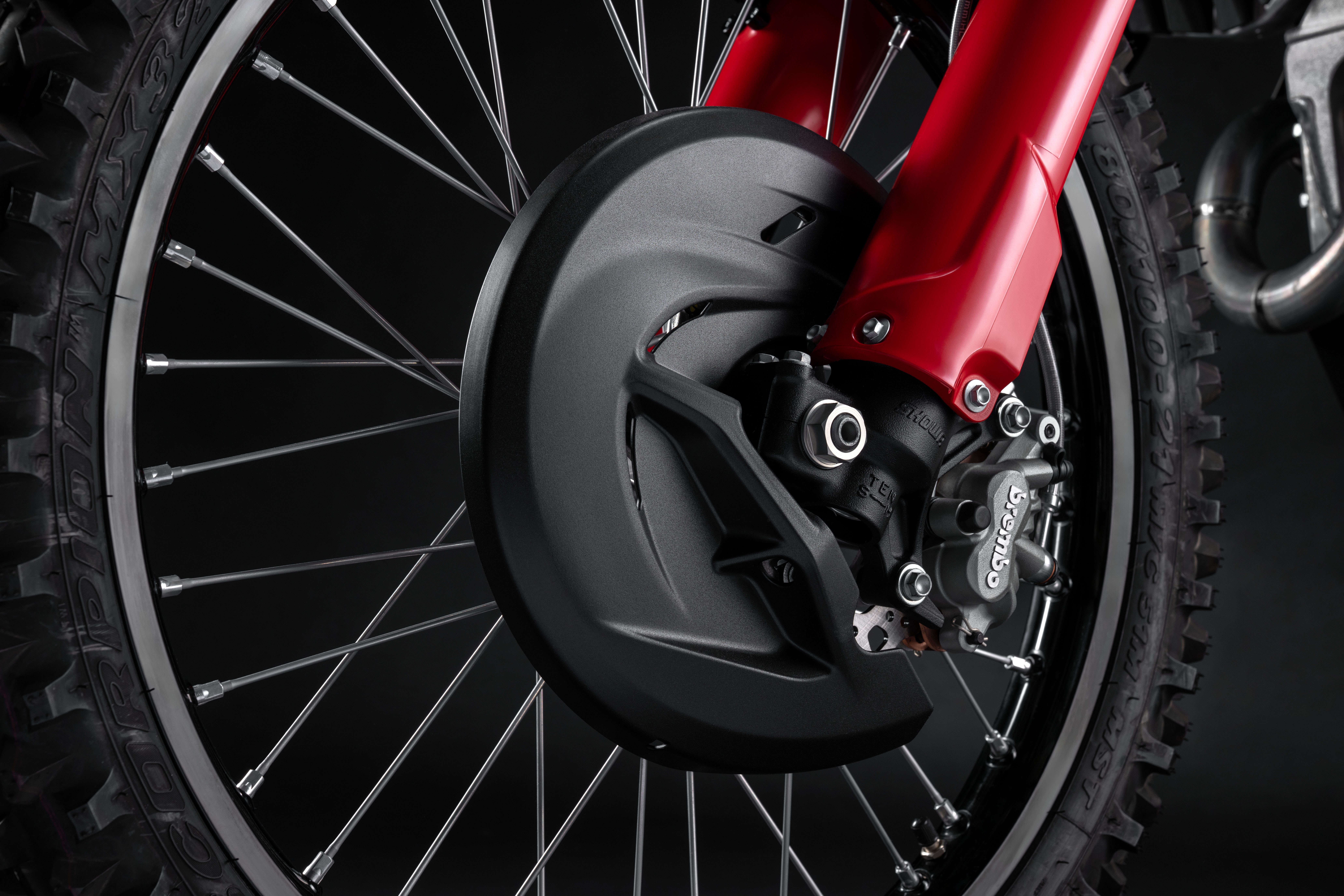 Ducati Performance offers a wide range of accessories to create a replica of the Ducati Desmo450 MX competing in the MXGP World Championship. All the details of the works 450 MX are available to enthusiasts, with the sole exception of the official Showa suspension, which cannot be purchased by private riders. The special parts include high-performance rims with reinforced spokes and hubs machined from solid blocks, a racing seat and Brembo Racing brake calipers.