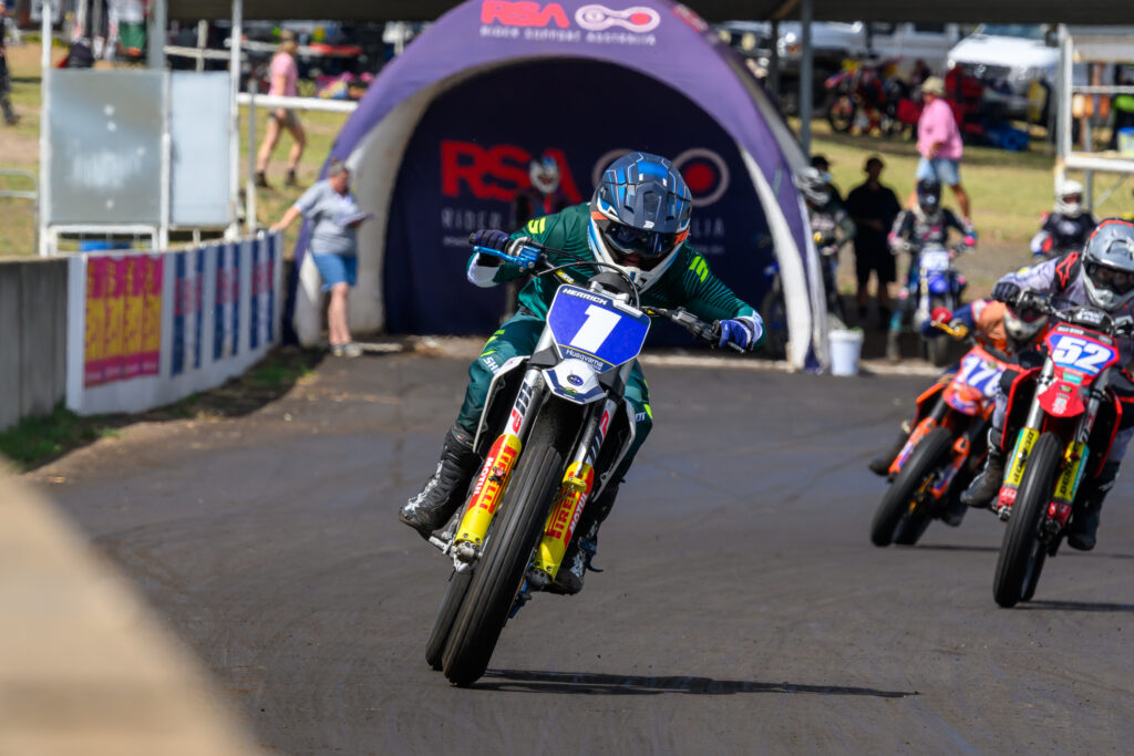 Dunker came out firing, two seconds clear of Michael Kirkness (Honda) in the opener and backed that up with a three-second win over Wicks in the second event. Dunker stepped it up a notch for a five second win over Kirkness in the third race and completed his dominant display with victory over rising star Cooper Archibald in the final race. Dunker was a standout, showing extreme pace all day while Herrick rode a smart four races to come home in fifth and seal his second championship.