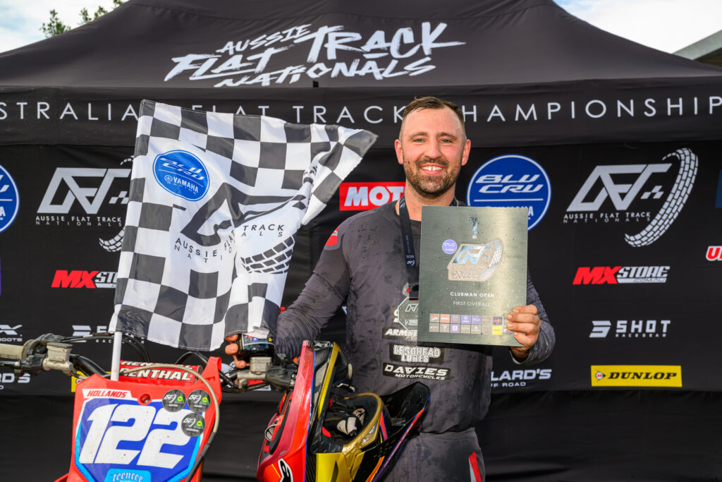 Now a two-time Pro 450 Yamaha BLU CRU Aussie Flat Track Nationals champion, Thomas Herrick gets to keep his number one plate for another year as he took the coveted Bunda Fine Jewels trophy ring at the season’s finale on Sunday at Gunnedah’s Balcary Park. Finishing fifth overall for the round, Herrick still sealed the championship on a day where ASBK star Cameron Dunker was unbeatable, with Dunker claiming Superpole and every race win.