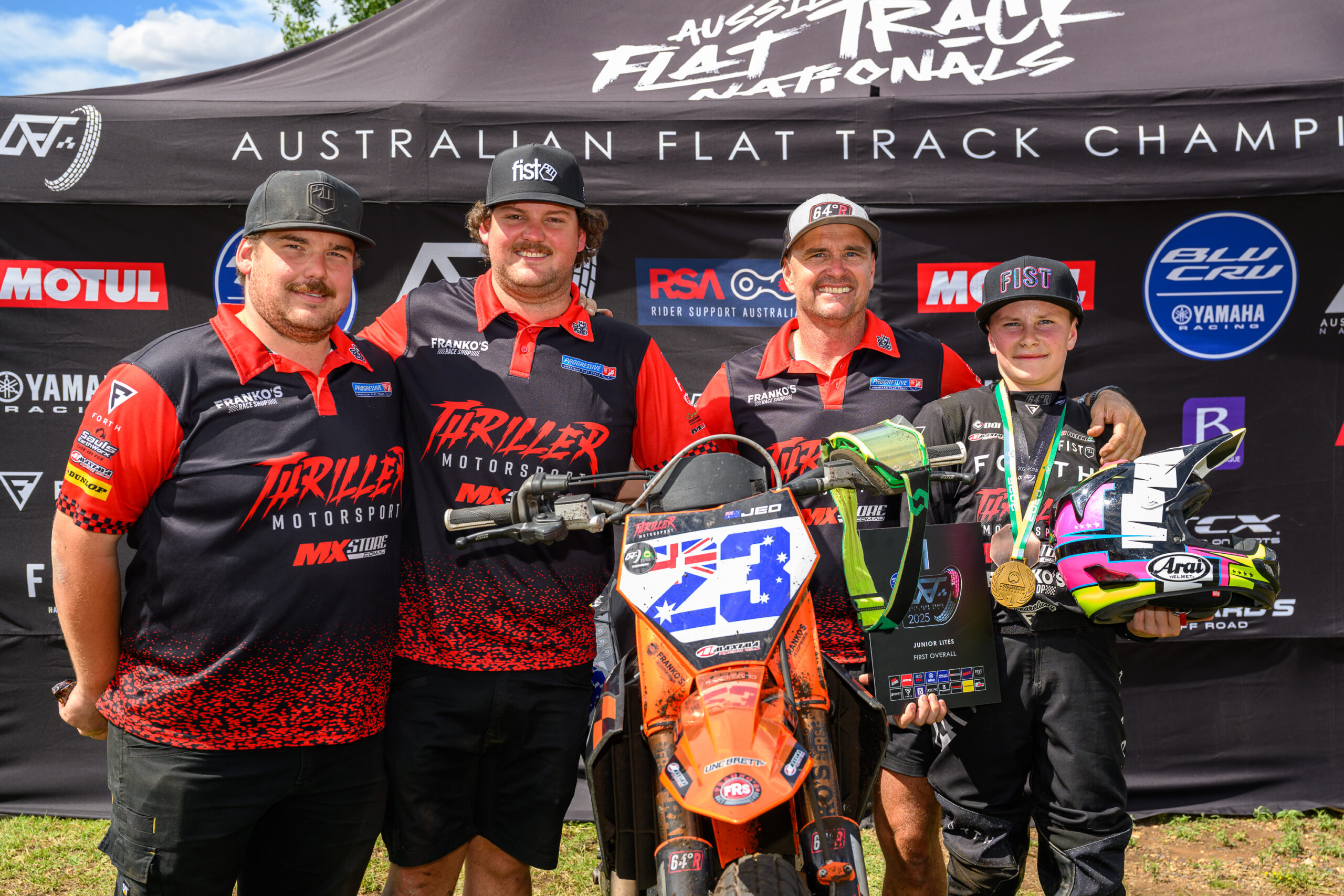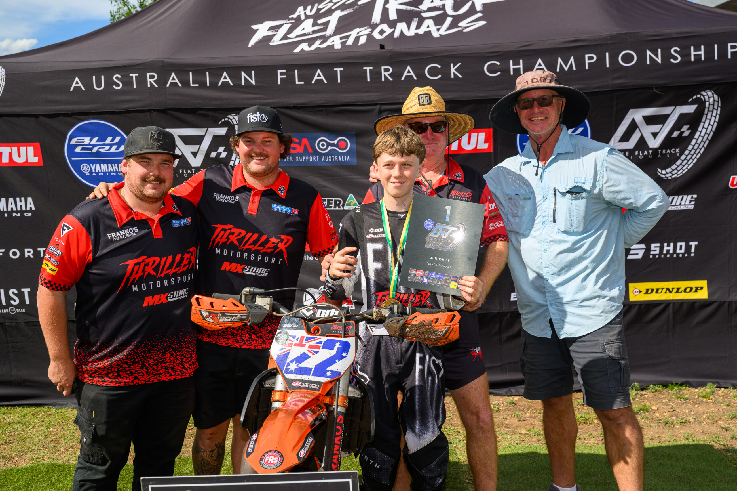 In Junior Lites, Jed Fyffe closed out the title with a third place for the round as chief rival Neiko Donovan claimed victory on the TT track with Sam Drane in second. Beau Baker regained form on Sunday to seal the Junior 85s title, but it was Flynn Beard who scored his second TT round win of the year. Sam Hollands continued his dominance in Clubman Open – taking both the round and title in convincing style. The Pro 450 win for Dunker capped off an impressive season for Townsville based Franko’s Race Shop, who also prepared championship winning machines for Fyffe and Baker.