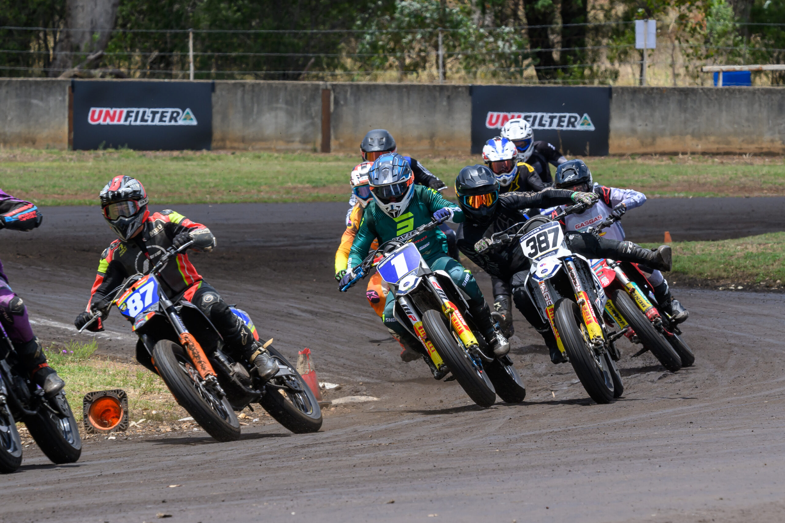 Now a two-time Pro 450 Yamaha BLU CRU Aussie Flat Track Nationals champion, Thomas Herrick gets to keep his number one plate for another year as he took the coveted Bunda Fine Jewels trophy ring at the season’s finale on Sunday at Gunnedah’s Balcary Park. Finishing fifth overall for the round, Herrick still sealed the championship on a day where ASBK star Cameron Dunker was unbeatable, with Dunker claiming Superpole and every race win.
