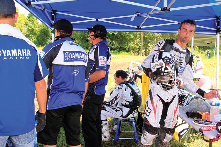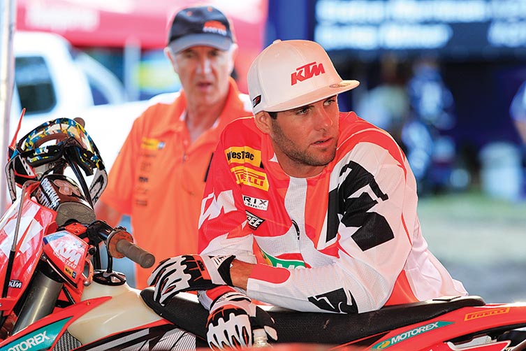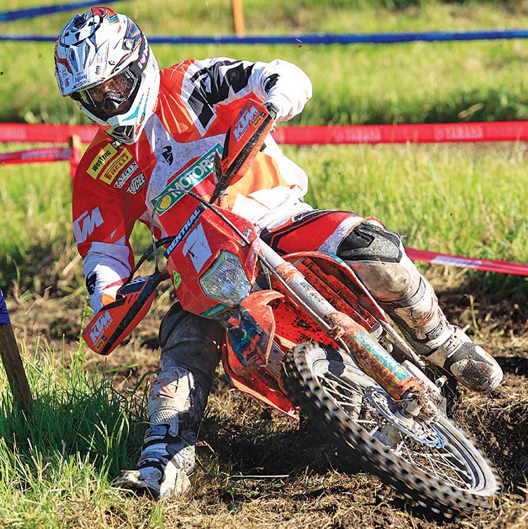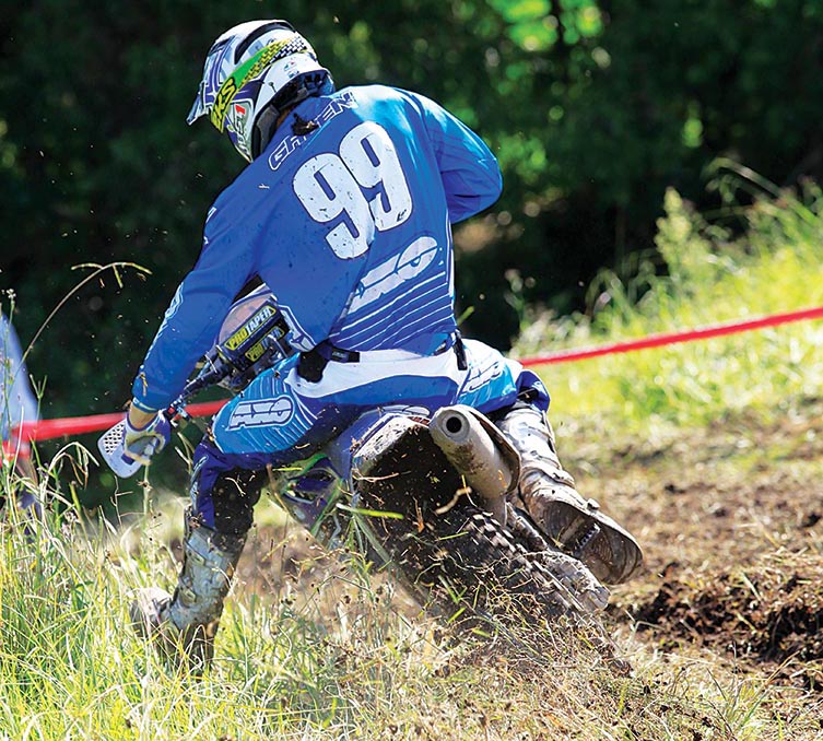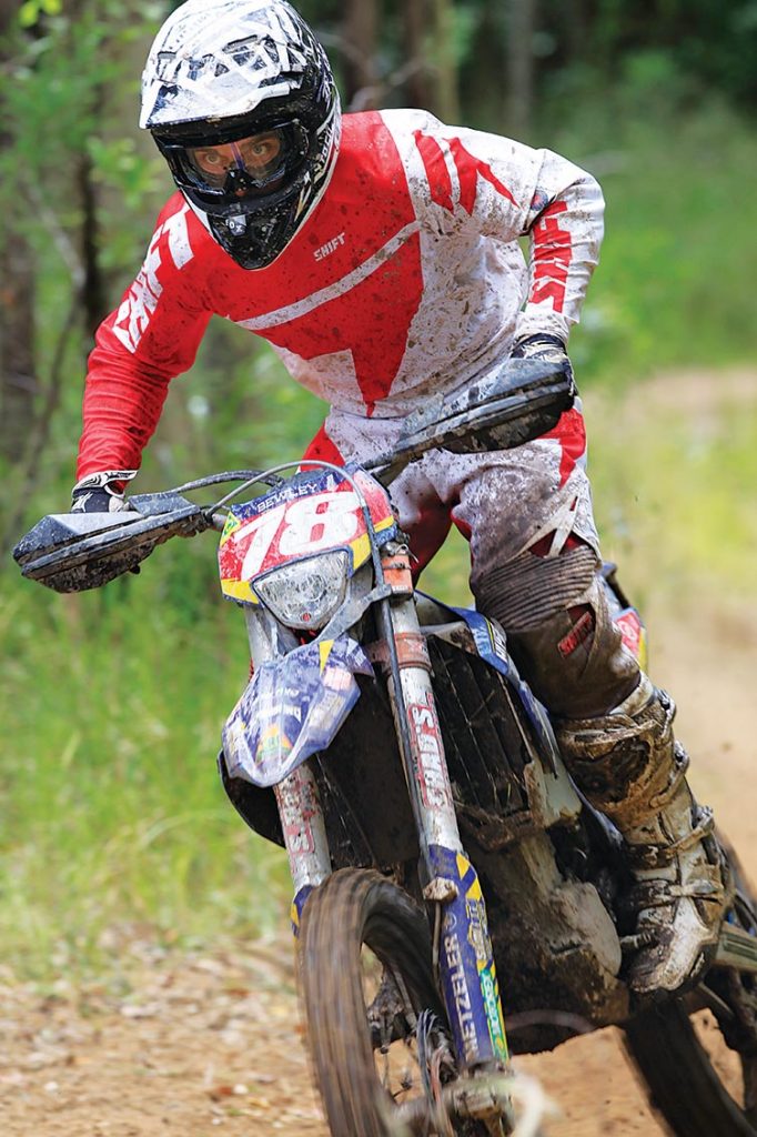 It’s the first year for the 2009 A4 DE champ aboard Husaberg machinery, but he’s clearly getting to grips with it. This shot was taken nearing the end of Round 2 and shows how the Pro-level riders keep focused right to the end of the event. The previous day’s round had seen the field attack the three-hour cross-country race and Bewley – regarded as one of the fittest athletes on tour – looked physically drained after the event, as the course was tight, bumpy, rocky and unforgiving. This image demonstrates the muscle memory of a Pro rider and the importance of correct body position. For as tired as he is here, his stance on the bike hasn’t faltered, and he remains in the attack position and leading with his head.
