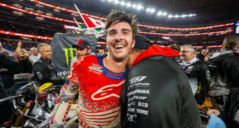 “It’s cool, but we’ve got a lot of racing left,” a humble Hunter Lawrence said in his post-race podium interview in Texas. “It’s cool to be racing with the sport’s legends, and I’m happy to tick that little box. It’s a huge thank you to my team and everyone that’s around me. We’ve got an amazing group and that’s really the most valuable thing in my program. It takes a whole village to move mountains.”