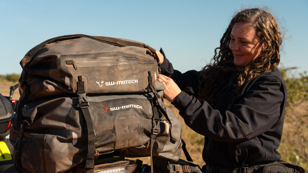 “I was very excited to have good luggage that would hold everything we needed. I did a ride in the NT with my Dad a few years back and we did not have enough storage and it made the entire trip really difficult. The SW-MOTECH collection I had gave me ample room for camping equipment, spares, tools, first aid, fuel, water and food and the set-up made unpacking and repacking each day so much easier than previous set-ups – with heaps of tie points, the tank bags epic magnetic system and the SysBags having a removable inner pouch.”