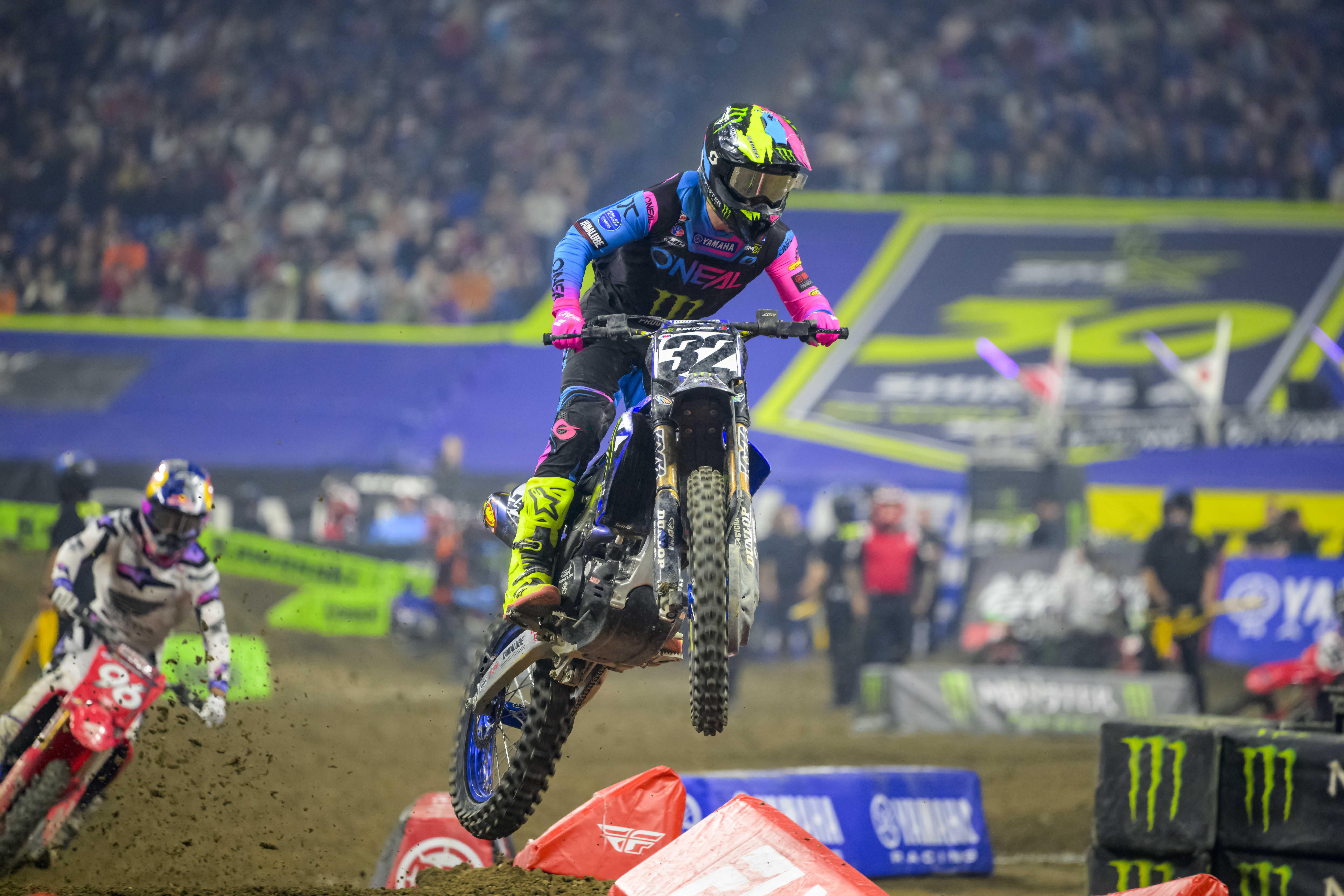 “Yeah, I feel like for me, I’ve done so many races, and I’ve been on the podium many times and I haven’t gotten that win. So, your mind can play games on you, and you start questioning stuff. You’ve just got to keep going where you’re going and believe that you can. If you find yourself in the right position, you can go after it. It’s just good to be in the mix. You know it’s one thing to be way off the leaders and really not have any confidence about beating them, but to be riding and racing with them all the time gives you a lot of confidence to run up front. Yeah, I think we’re going to win one of these things soon. And racing with Cooper Webb is really good. We’ve been teammates for two years now. He’s done so many years in the 450 class, and I learned a lot from him in the beginning. We just continue to push each other and help each other. Just the training alone and just riding with someone like that just elevates both of us. We can kind of feed off each other, so it’s all good. Sometimes if we’re struggling, we’re there to give each other some insight. If I’m doing something better or if he’s doing something better, we see that in the footage and just go over it. It’s definitely good to have a teammate like that.