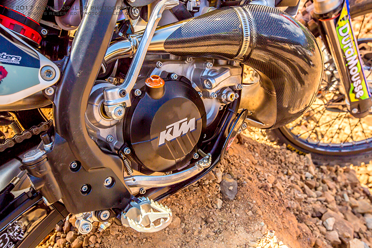 After the first prologue, I was intrigued with playing around with the bike’s power delivery characteristics to try and boost me along a little better. Luckily enough for me, the R&D guys from the KTM factory were on hand, adjusting the power-valve to suit the two individual maps I had access to via the KTM PowerParts map-selector switch.