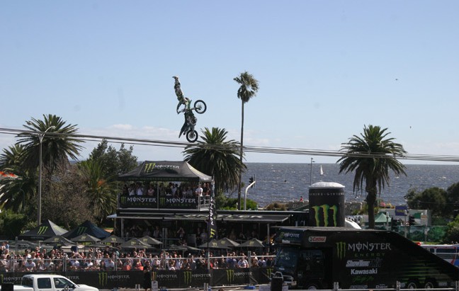 Closer to the ground the best in the stunt bike business will rev crowds into a frenzy.