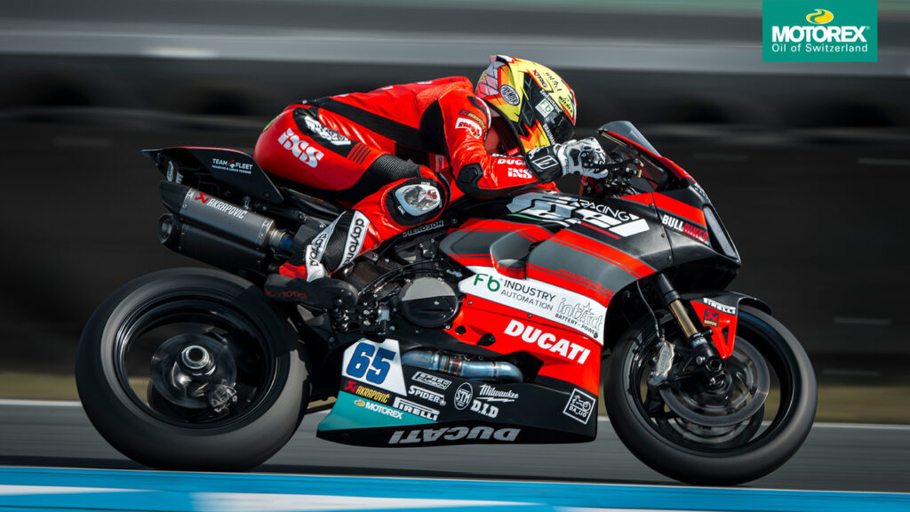 Away from world championship competition, MOTOREX kicked off some exciting new partnerships in 2025. A fresh agreement with French motorcycle brand Sherco means every production bike rolls out of the factory filled with MOTOREX. Sherco Racing Factory benefitted immediately, scoring world titles in TrialGP and EnduroGP, plus a Dakar stage win and victory at round five of the FIM Bajas World Cup. Other partnerships include working with WorldSSP team Feel Racing on their Ducati machinery.
