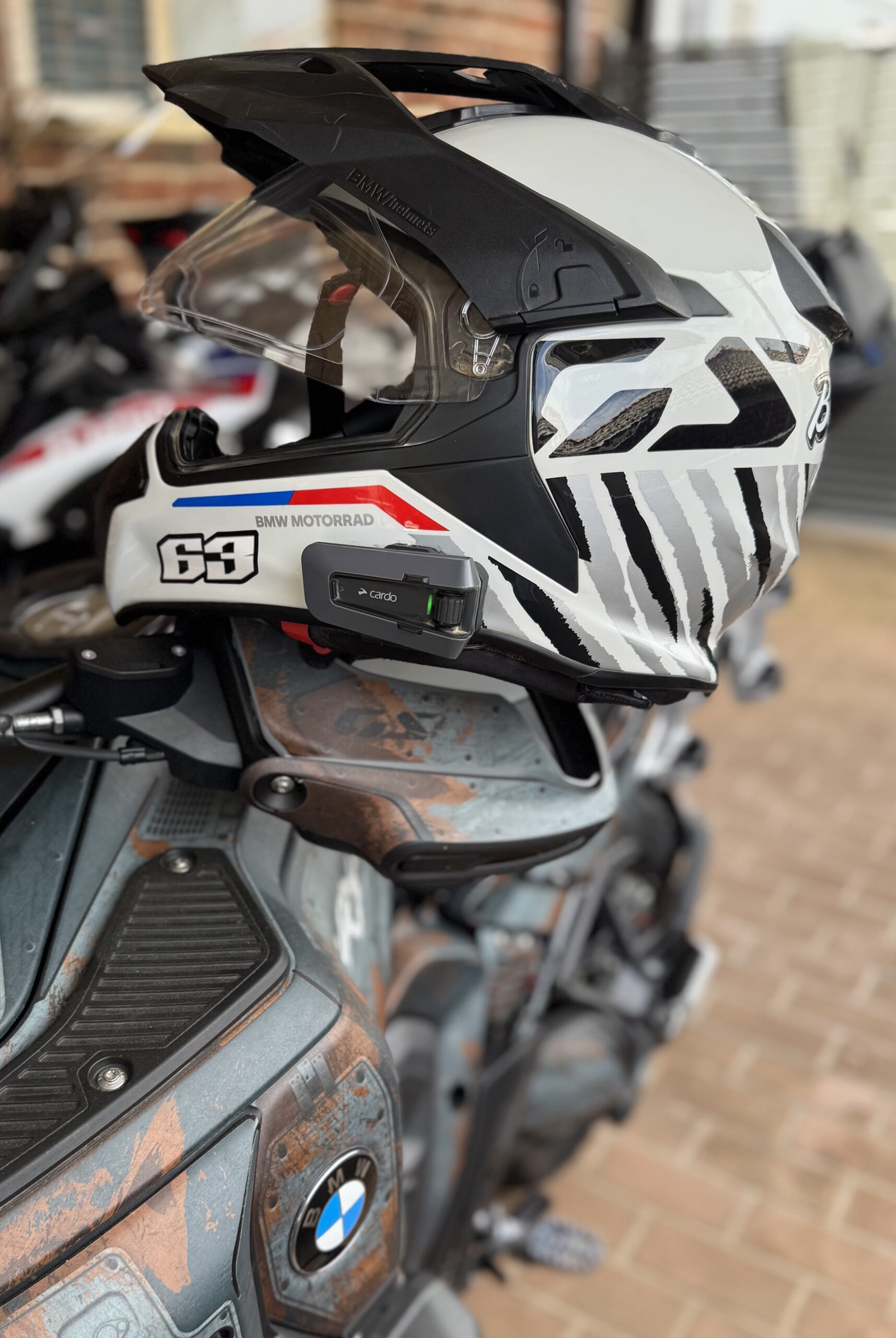 - SOUND OF MUSIC: One of the biggest perks? Music on the go. There’s nothing like hitting the open road with your favourite tunes pumping through your helmet. The Packtalk Edge connects to your phone via Bluetooth, so you can stream music straight from Spotify, Apple Music, or wherever you get your playlists. The sound quality is top-notch, thanks to JBL speakers, and you can even control it with your voice. No more fumbling with your gloves to skip a song — just say, “Hey, Cardo. Next track,” and away you go.