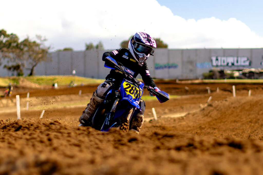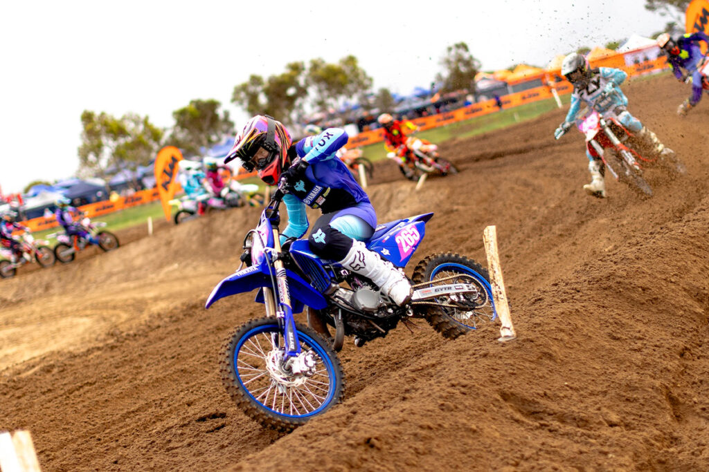 GYTR Yamaha Junior Racing’s Eliza Dennis continued her stretch of dominance over the 85cc 2T & 150cc 4T 12-U16yrs Girls field, achieving four from five race wins throughout the finals, with a measured P3 finish in the fifth race earning her this year’s championship over Aida Harris and Stephanie Turnbull, with a single point between the pair after close racing.