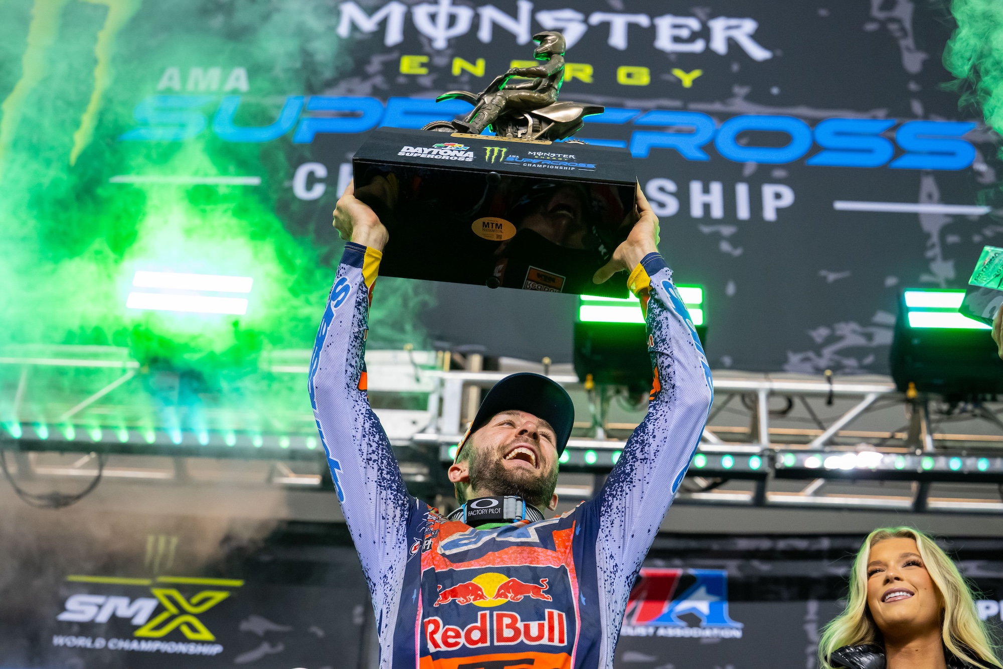 “Somehow I have won eight Daytona Supercrosses! I just go out there and roost the berms like I’m at my home track – I love this dirt and the way it develops. Of course, I had to work for it there tonight, I went through all my main competition and just had a great time on my motorcycle. I love spraying these sand turns, I’m so thankful to get it done with Red Bull KTM, and to make up some championship points this weekend.”