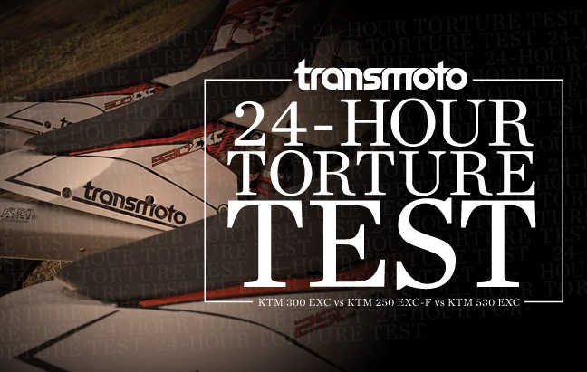 In two 12-hour days, we put three new KTMs through more punishment than the average bike cops in six months. We test the KTM 300 EXC, the KTM 250 EXC-F and the KTM 530 EXC. But how do the three compare in terms of consumption rates and repair costs? Pick up Transmoto Issue #5 and find out. Or buy a subscription and receive nine issues of Transmoto for just $60 delivered straight to your door! Until then, check out the behind-the-scenes video of the event.