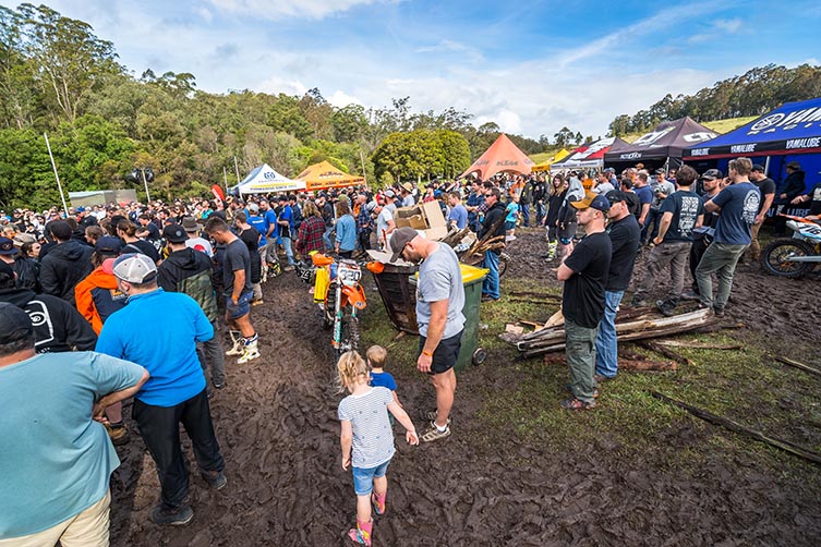 And with 100mm of rain in the week leading up to last weekend’s fourth annual installment, that run of extreme weather didn’t look like being interrupted. Sure, much of this year’s pit paddock looked like an ankle-deep pig pen, the grasstrack was gooey, and there were a few bike-swallowing bog holes to deal with around the 18km loop, but all of the trail sections were a prime shade of loam.