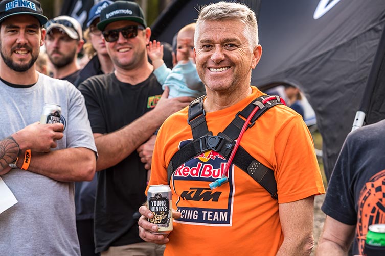 “One of the guys in my team, Troy Wilson – an old mate of mine from WA, and an ex-AFL footy player who goes by the name “Big Nuts’ – decided he’d enter the running race and secure the team a good starting position for Sunday. Anyway, so he’s warming up and obviously taking it pretty seriously. But the next thing you know, Troy says he’s pulled a hamstring [laughs], so we hand the footrace baton over to one of our sponsored Pro riders, Lachy Stanford.
