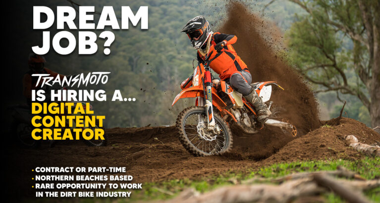 Transmoto – Australia’s leading dirt bike media and events company – is on the hunt for an ambitious, content-savvy operator to join our team in the role of Digital Content Creator. The role would best suit a contractor or someone looking for part-time hours, and is located in Mona Vale on Sydney’s Northern Beaches (though we’re open to remote for the right candidate).