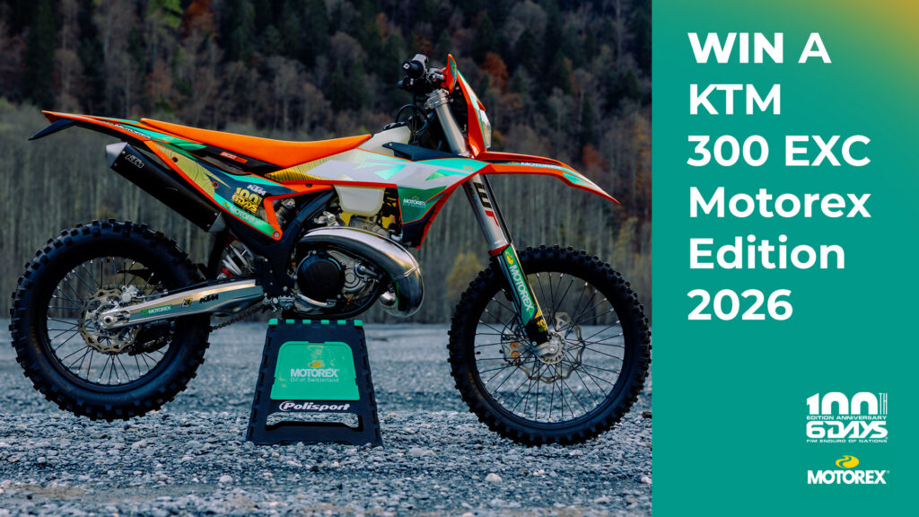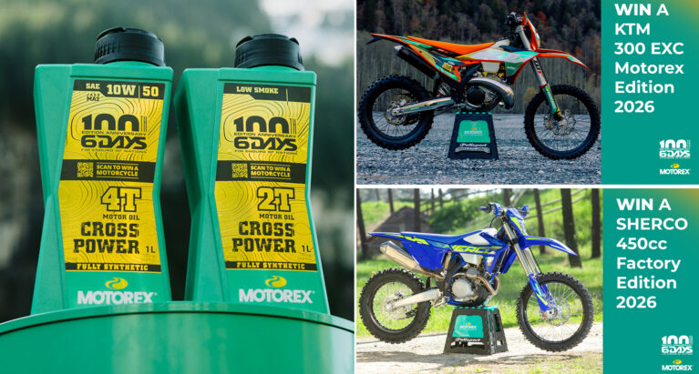 In addition to the new release, Motorex is also running a competition with exclusive prizes. Simply purchase a bottle of the limited-edition 6DAYS packaging and you can give yourself the chance to win a brand new Sherco 450SEF Factory Edition and a KTM 300EXC 2026 Motorex Edition. Once purchased, scan QR code on the bottle to find out more.